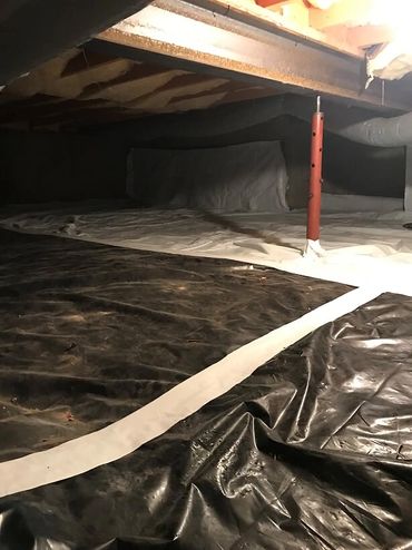 In crawlspaces that have dirt or gravel floors, we seal your crawlspace with an airtight membrane called a vapor barrier. All stored items and debris must be removed from the ground before the installation of the vapor barrier. This helps prevent the plastic from being ripped or torn when placing storage items back in the area.