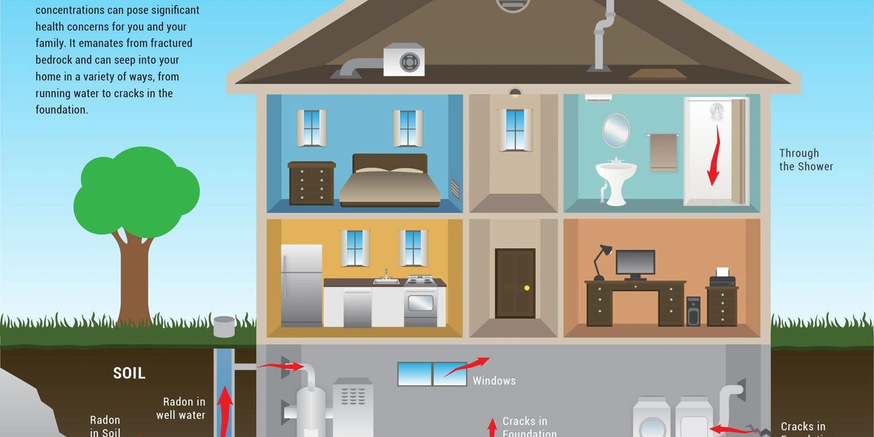 Radon gas seeps into your home through the soil, dirt crawlspaces, cracks in the foundation and walls, floor drains, pipes, and sump pumps.