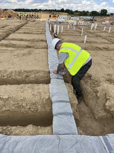 The first step is making the house resistant to radon during the construction phase. This is done by installing a specialized air channel before the foundation is poured. This keeps the soil gases from ever entering the house. Once we pour the foundation, all openings and cracks are sealed to prevent gases from entering the home.